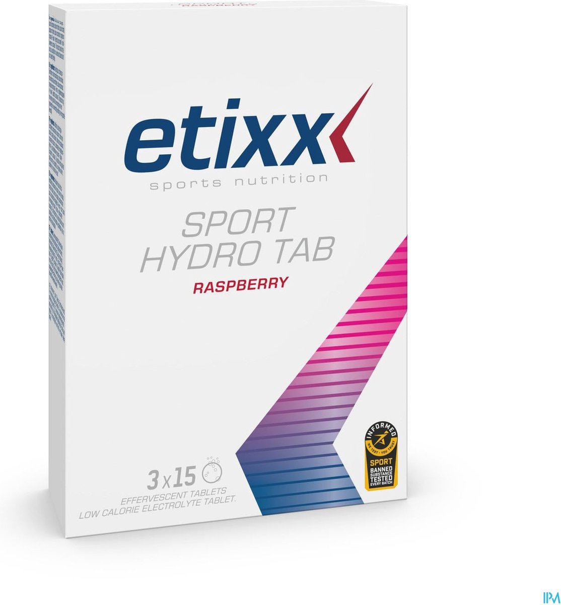 Productbeschrijving De Etixx Sport Hydro Tab biedt een ideale mix van elektrolyten die in combinatie met water je vochtbalans weer in evenwicht helpen te brengen. Tijdens het sporten gaat je lichaam zweten. Zo voorkomt het dat je lichaamstemperatuur te hoog oploopt. Het vocht dat je verliest, moet worden aangevuld door te drinken. Zo hou je de vochtbalans in je lichaam in evenwicht. Drink je te weinig om het vochtverlies te compenseren (nl. uitdroging)? Dan heeft dat een negatief effect op je langdurige inspanningen en intense intervaltrainingen (waarbij inspanningen en korte rustpauzes elkaar afwisselen). Uitdroging herken je mogelijks aan een droge mond, dorst, hoofdpijn, oververhitting, concentratieverlies, krampen …