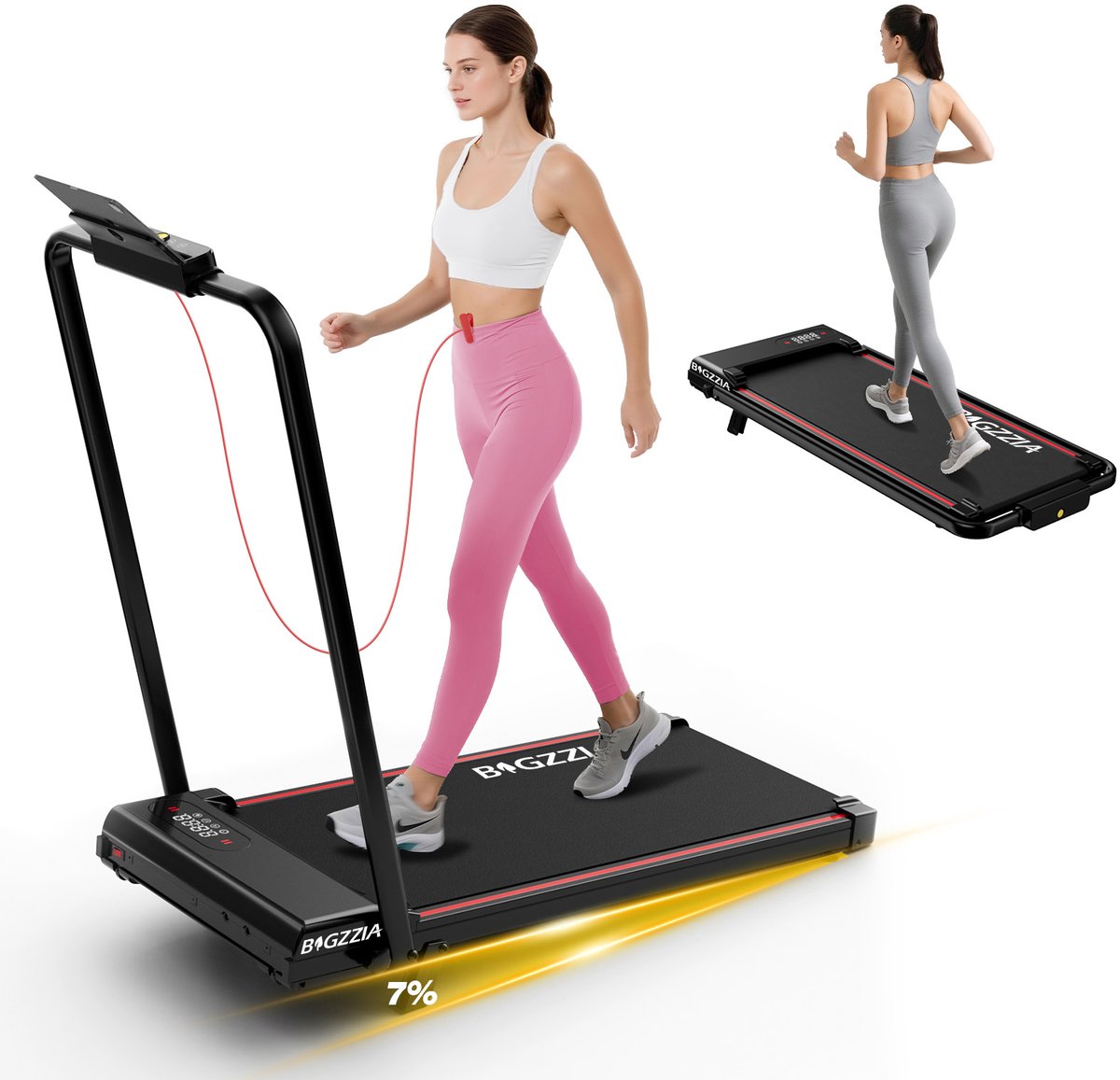 BIGZZIA 3-in-1 opvouwbare loopband met 7% helling – Inklapbaar loopband Elektrisch met armleuningen – 1-8 km/u – 2,5 pk motor – afstandsbediening – LED-scherm – 130 kg draagvermogen – Geluid