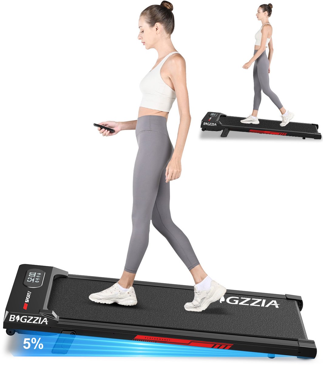BIGZZIA Loopband draagbaar met 5% helling – 4-in-1 Walkingpad Elektrisch – loopkussen 1-8 km/u instelbaar – Motor 2,5 pk – met afstandsbediening en LED-display – 120 kg draagvermogen – Treadmill Zwart