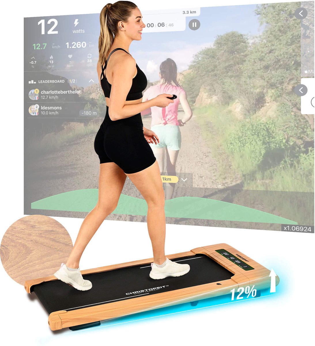 Voor betrouwbare hartslagbewaking is de Walking Pad 4.2 uitgerust met een Bluetooth hartslagontvanger die compatibel is met een optionele hartslagband. Comfort en veiligheid: de Walking Pad 4.2 is ontworpen voor een maximaal lichaamsgewicht van 120 kg en heeft professionele dempers die eenN gewrichtsvriendelijke training mogelijk te maken. De gemonteerde transportrollen zorgen ervoor dat u het apparaat snel en eenvoudig naar de gewenste locatie kunt verplaatsen. Interactieve training met de Kinomap-app, Zwift en Fithome: Verhoog je motivatie met de Kinomap-app!De Walking Pad 4.2 is compatibel met Kinomap en biedt een Bluetooth®-interface waarmee je interactief en leuk kunt trainen met Android- of iOS-apparaten.