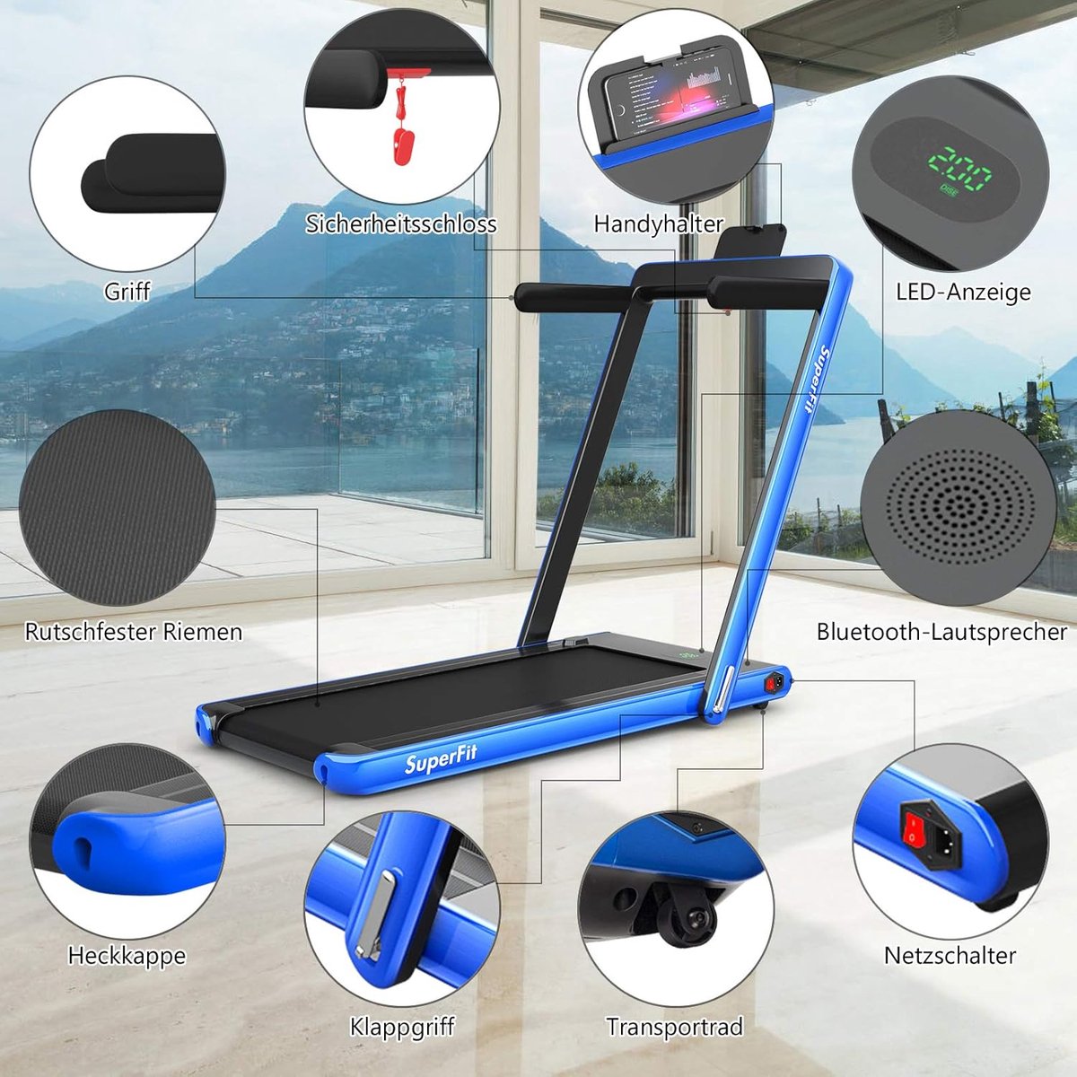 App-gecontroleerd en bluetooth-luidspreker: intelligent gepersonaliseerd gezondheidsmanagement is mogelijk vanwege de app-functie. Door de bluetooth-functie maakt de loopband het lopen niet meer saai, want hij kan muziek afspelen.
