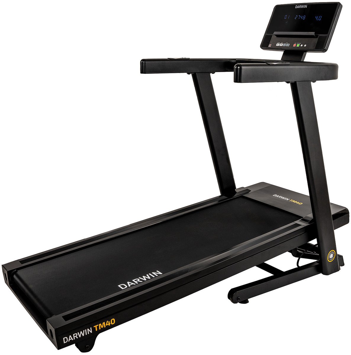 Met een topsnelheid van 20 km/u en een instelbare hellingsgraad tot 15% is de TM40 loopband van Darwin ideaal voor ontspannen hardloopsessies of wandelen met variërende hellingsniveaus. Dankzij het compacte ontwerp is hij ook ideaal voor kleinere fitnessruimtes of de woonkamer. Praktisch: na de training kan de loopband worden ingeklapt en dankzij de transportwielen kan de loopband eenvoudig worden verplaatst. Intelligente programma’s en uitstekende eigenschappen De Darwin TM40 maakt indruk met hoogwaardige materialen en doordachte functies die hardlooptraining thuis aangenaam en efficiënt maken. De loopband is eenvoudig te bedienen en met in totaal 43 loopprogramma’s is de keuze veelzijdig. Met behulp van de snelkeuzeknoppen kunnen de snelheid en hellingshoek tijdens het trainen eenvoudig worden aangepast. De TM40 biedt 36 vooraf ingestelde programma’s waarbij zowel de helling als de snelheid voor elke fase al zijn ingesteld. Deze programma’s worden duidelijk uitgelegd in de instructies. Er is ook een handmatige modus die hardlopen in de buitenlucht simuleert. Voor een bijzonder gerichte training zijn er ook hartslagprogramma’s beschikbaar. Loopband met goede uitrusting voor eenvoudige hardlooptraining thuis Ruimtebesparend en opvouwbaar Veel kant-en-klare trainingsprogramma’s zorgen voor afwisseling Borstelloze motor: stiller, energiezuiniger, vereist minder onderhoud, genereert minder warmte en is duurzamer