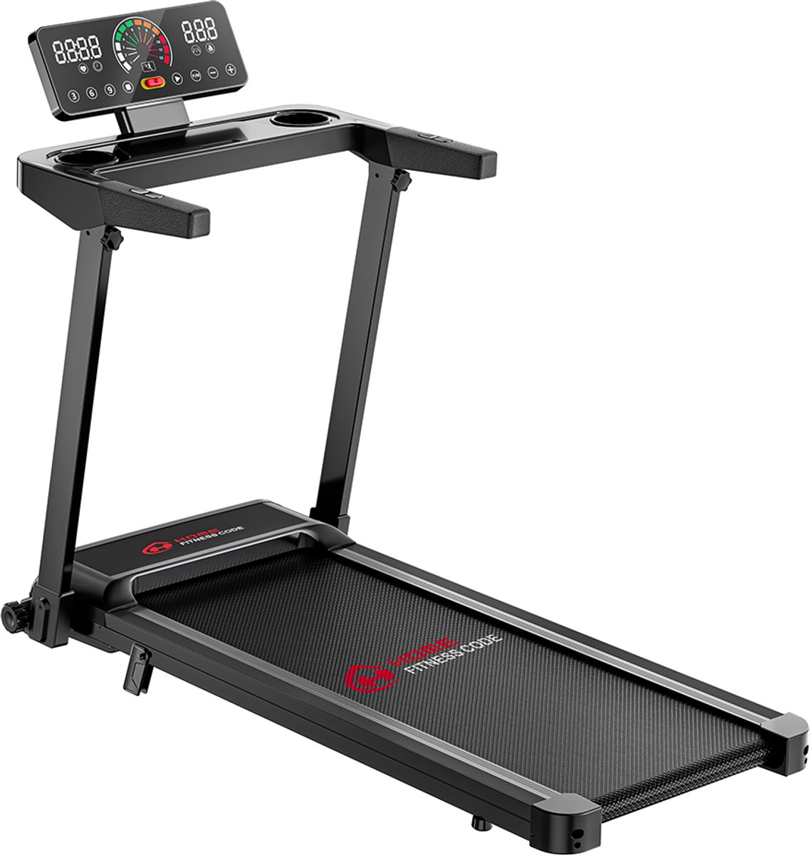 de handgrepen en het scherm van deze loopband kunnen moeiteloos worden ingeklapt. Na uw training kunt u hem eenvoudig onder de bank of het bed opbergen om ruimte te besparen, waardoor hij bijzonder geschikt is voor kleine woningen. Dankzij de wieltjes aan de onderkant kunt u hem moeiteloos verplaatsen, zodat zelfs mensen met minder kracht hem gemakkelijk kunnen opbergen.