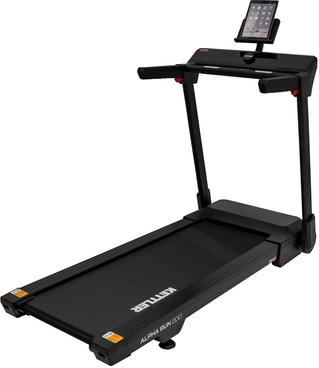 Alpha Run 200: Compact, modern en veelzijdig De Alpha Run 200 combineert een modern design met een bijzonder ruimtebesparende constructie. Dankzij het platte vouwmechanisme is de loopband niet alleen in een handomdraai op te vouwen, maar ook rechtop op te bergen – ideaal voor kleine appartementen of sportruimtes met beperkte ruimte. De robuuste constructie, comfortabele demping en een loopvlak van 128,5 × 45 cm maken de Alpha Run 200 perfect voor wandelen, licht joggen en intensievere duurlopen. Installatie in minder dan 20 minuten – makkelijker kan het niet Het installeren van de Alpha Run 200 is buitengewoon eenvoudig: uitklappen, de twee covers erop schroeven – klaar. Dit betekent dat het apparaat in minder dan 20 minuten klaar voor gebruik is, zodat je direct kunt beginnen met trainen. De bediening is ook bewust intuïtief: de draaiknop maakt het selecteren van programma’s, instellingen en snelheden bijzonder eenvoudig. Motiverende training met Kinomap, Zwift & uitgebreide programma’s De Alpha Run 200 biedt niet alleen 36 voorgeïnstalleerde programma’s, hartslagmodi en aanpasbare instellingen, maar kan ook worden verbonden met populaire fitnessapps zoals Kinomap of Zwift. Zo kun je virtuele routes lopen, trainingsgegevens analyseren of deelnemen aan online challenges – voor nog meer motivatie en variatie. De grote, afneembare tablethouder houdt elke tablet stevig vast, zodat je je favoriete apps comfortabel kunt gebruiken. Stabiel, comfortabel en afgestemd op jouw doelen De krachtige 2 pk continu-motor maakt snelheden mogelijk van 0,8 tot 18 km/u in nauwkeurige stappen van 0,1 km/u. De helling is in twaalf niveaus instelbaar, zodat je je training altijd kunt aanpassen aan je fitnessniveau. Het gewrichtsvriendelijke dempingssysteem beschermt je knieën en rug – comfortabeler dan veel verharde buitenpaden. Met een maximaal gebruikersgewicht van 120 kg, handpulssensoren, een optionele borstband en geïntegreerde transportwielen biedt de Alpha Run 200 alles wat je nodig hebt voor een effectieve en comfortabele workout thuis. Kettler loopband met een zeer ruimtebesparend opvouwmechanisme De nieuwe Alpha Run 200 kan ook rechtop worden opgeborgen. Montage is mogelijk in minder dan 20 minuten: gewoon uitklappen en twee afdekkingen erop schroeven! Zeer eenvoudig te bedienen met draaiknop Grote tablethouder (ook verwijderbaar) Helling verstelbaar in twaalf stappen Loopoppervlak geschikt voor wandelen, licht joggen en veeleisende duurlopen Console met diverse trainingsprogramma’s:36 voorgeïnstalleerde profielprogramma’sSnelstart- en doelprogramma’s2 hartslagprogramma’sDoor de gebruiker gedefinieerde programma’s Aangename demping – minder belastend voor de gewrichten dan verharde buitenpaden Verbinding met verschillende fitnessapps zoals Kinomap of Zwift is mogelijk.