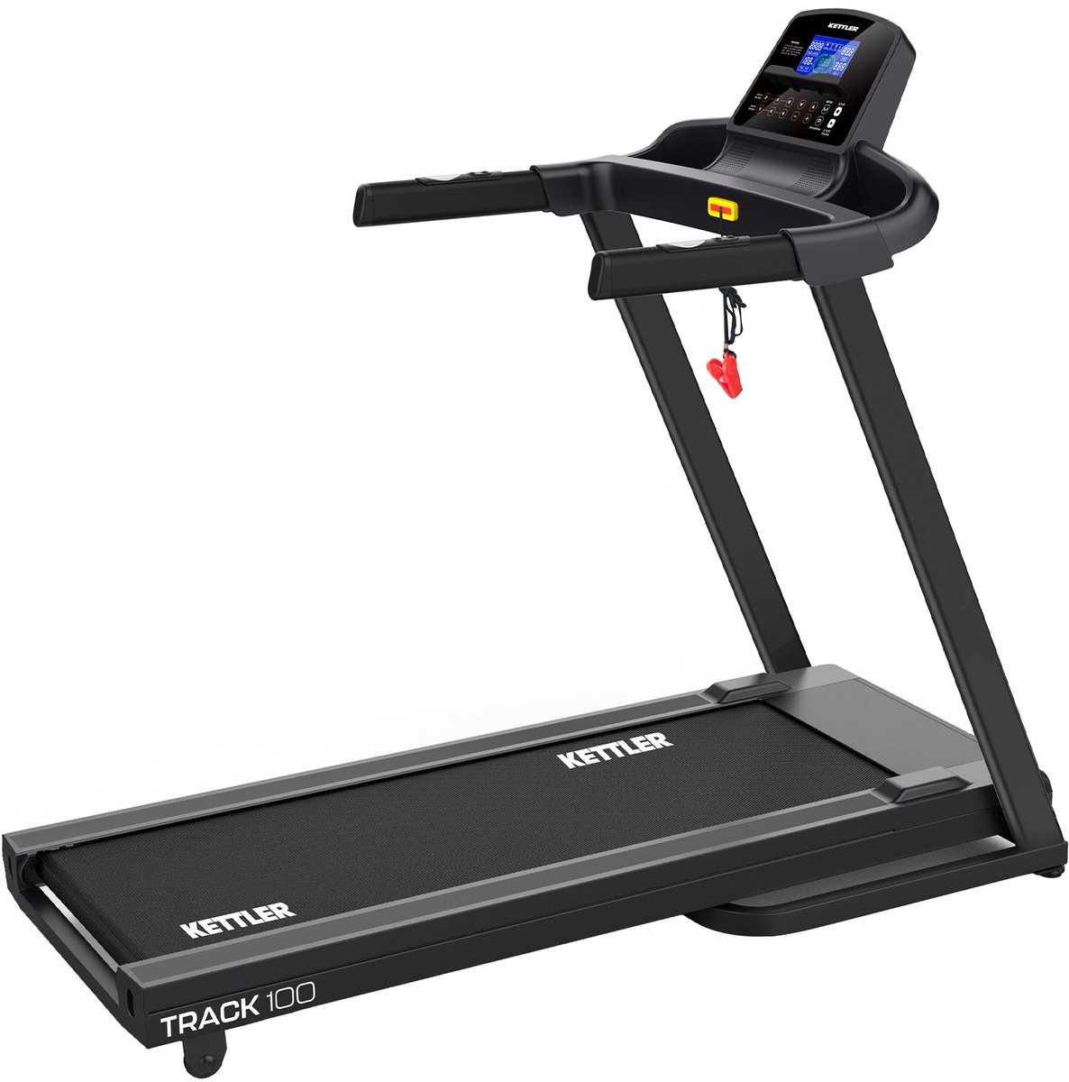 Kettler Loopband Track 100 De Kettler Loopband Track 100 is de perfecte trainingspartner voor thuis. Compact, opvouwbaar en gebruiksvriendelijk, biedt hij een volledig trainingsprogramma voor wandelen, joggen en intervaltraining met een snelheid tot 16 km/u en een helling tot 10%.