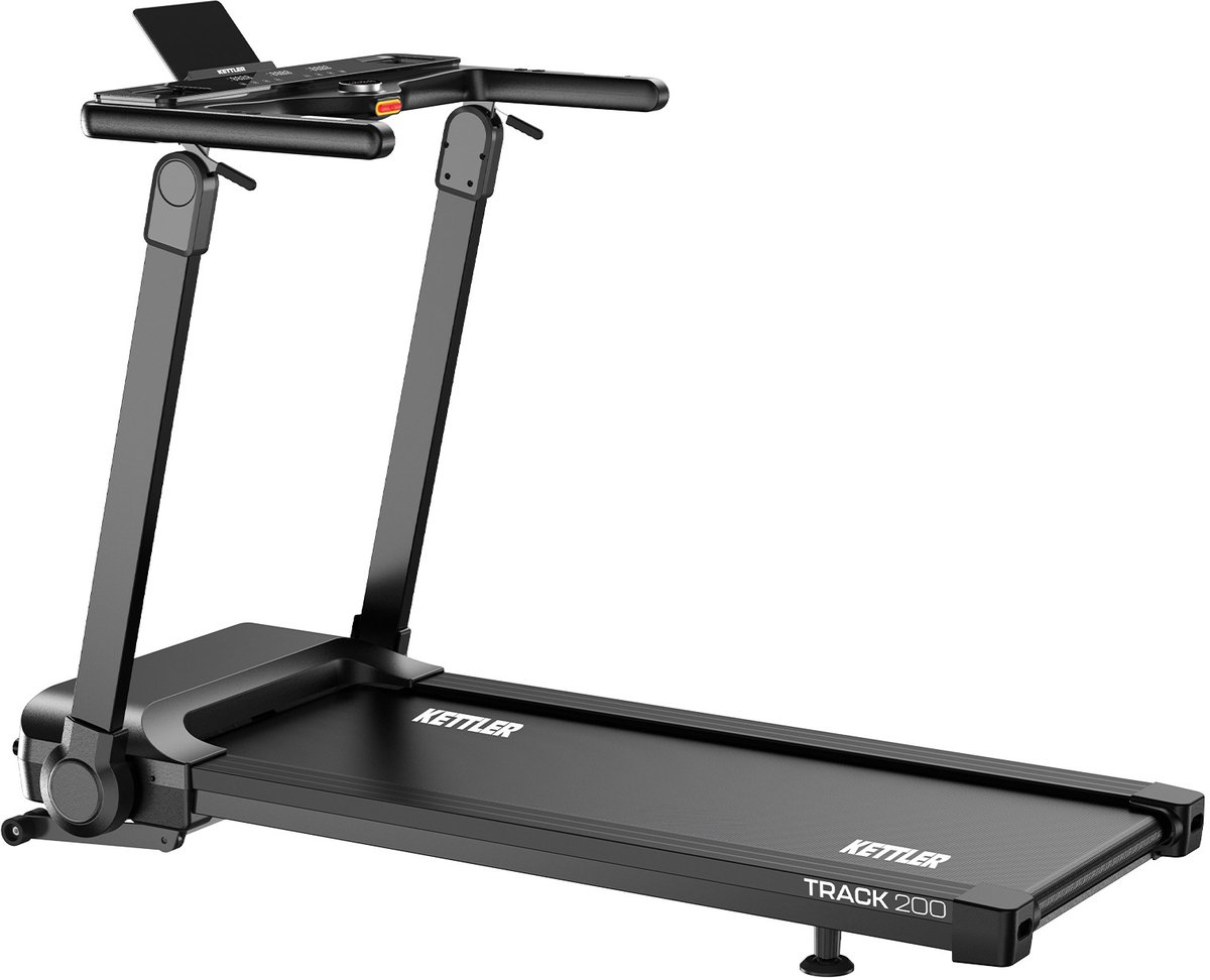 Kettler Loopband Track 200: Design ontmoet krachtige prestaties De Kettler Loopband Track 200 laat op indrukwekkende wijze zien hoe elegant design en krachtige functies samen kunnen gaan. Met zijn moderne, strakke look is het niet alleen een sportapparaat, maar ook een stijlvolle toevoeging aan je huis. De overzichtelijke uitstraling zorgt ervoor dat je er niet op uitgekeken raakt, maar hem juist zult waarderen als een tijdloze metgezel voor je trainingen. Innovatieve connectiviteit voor gevarieerde trainingen Laat je inspireren door de onbegrensde mogelijkheden van virtueel hardlopen. De Kettler Loopband Track 200 is compatibel met diverse populaire fitnessapps zoals Kinomap, Zwift en Fitshow. Dankzij de grote tablethouder, dompel je jezelf onder in de virtuele wereld, loop je echte routes en laat de helling van de loopband zich automatisch aanpassen aan de omstandigheden van de route. Beleef je training op een heel nieuw niveau. Eenvoudige bediening voor meer loopplezier De bediening van de Kettler Track 200 loopband is intuïtief en comfortabel. Het centrale bedieningselement is het jogwheel, waarmee je de snelheid en andere instellingen letterlijk in een handomdraai aanpast. De bediening wordt aangevuld met praktische snelkeuzeknoppen voor snelheid en helling, waarmee je snel de intensiteit kunt aanpassen. Zo kun je je volledig concentreren op je training. Slim inklapmechanisme: Ruimtebesparend en snel klaar voor gebruik Een absolute highlight van de Track 200 is het ingenieuze inklapmechanisme. In slechts een paar eenvoudige stappen klapt de loopband in tot een sensationele hoogte van slechts 22 cm. Dit maakt extreem ruimtebesparende opslag mogelijk, bijvoorbeeld rechtopstaand en veilig tegen een muur of plat onder de bank. En het beste van alles: de loopband wordt vrijwel volledig voorgemonteerd geleverd. Je kunt hem uitpakken, opzetten en in slechts 30 minuten beginnen met je eerste training. Krachtig en comfortabel Onder de elegante behuizing schuilt een borstelloze motor van 2 pk, die niet alleen energiezuinig en stil is, maar ook een langere levensduur biedt. Het ruime loopvlak van 130 x 48 cm en de instelbare hellingshoek met 15 niveaus zorgen voor een comfortabele en effectieve training. Dankzij de transportwielen verplaats je het apparaat gemakkelijk en train je waar het jou het beste uitkomt. Elegant design – modern, helder uiterlijk, stijlvolle toevoeging aan het huis Compatibel met fitnessapps – waaronder Kinomap, ZWIFT en Fitshow voor virtuele trainingswerelden (extra kosten kunnen van toepassing zijn) Grote tabletopslag – perfect voor entertainment of interactieve routeruns (tablet niet inbegrepen) Gebruiksvriendelijk – Jogwiel + snelkeuzeknoppen voor snelheid en helling Ruimtebesparend opvouwbaar – slechts 22 cm hoog, ideaal voor opberging aan de muur (vastgezet) of onder de bank Snel klaar voor gebruik – bijna volledig voorgemonteerd, montage in ongeveer 30 minuten Stille en efficiënte 2 pk-motor – borstelloos, duurzaam en energiebesparend Comfortabel loopoppervlak – 130 x 48 cm voor een veilige en comfortabele training Variabele helling – 15 niveaus voor gevarieerde trainingen Flexibel gebruik – eenvoudig te verplaatsen dankzij transportwielen