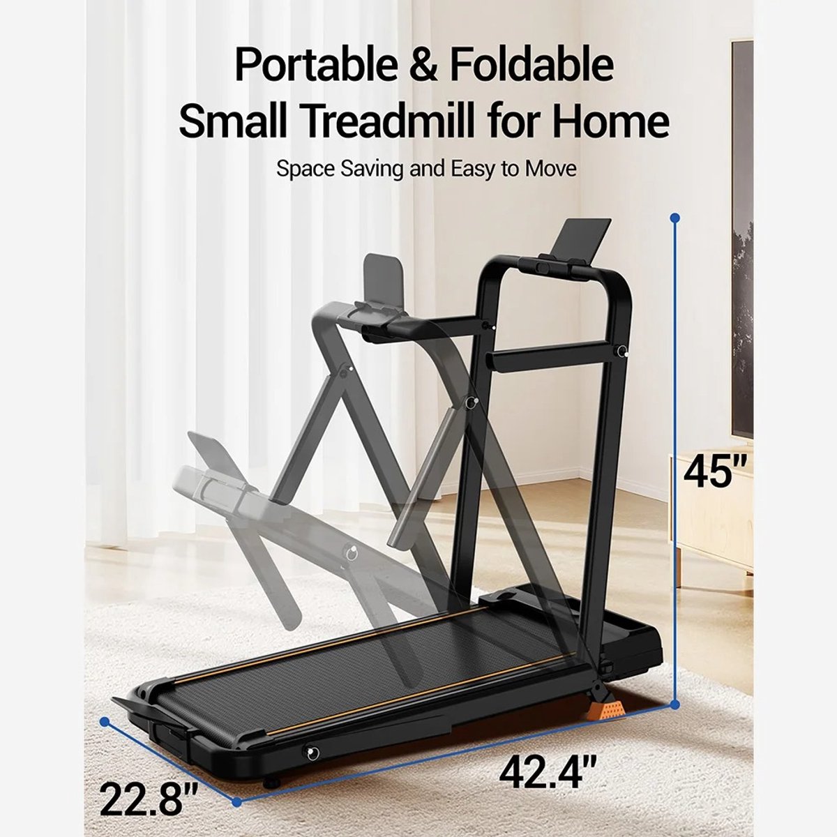 Dankzij het compacte formaat berg je de loopband eenvoudig op onder een bank of bed – perfect voor kleinere woningen of appartementen.