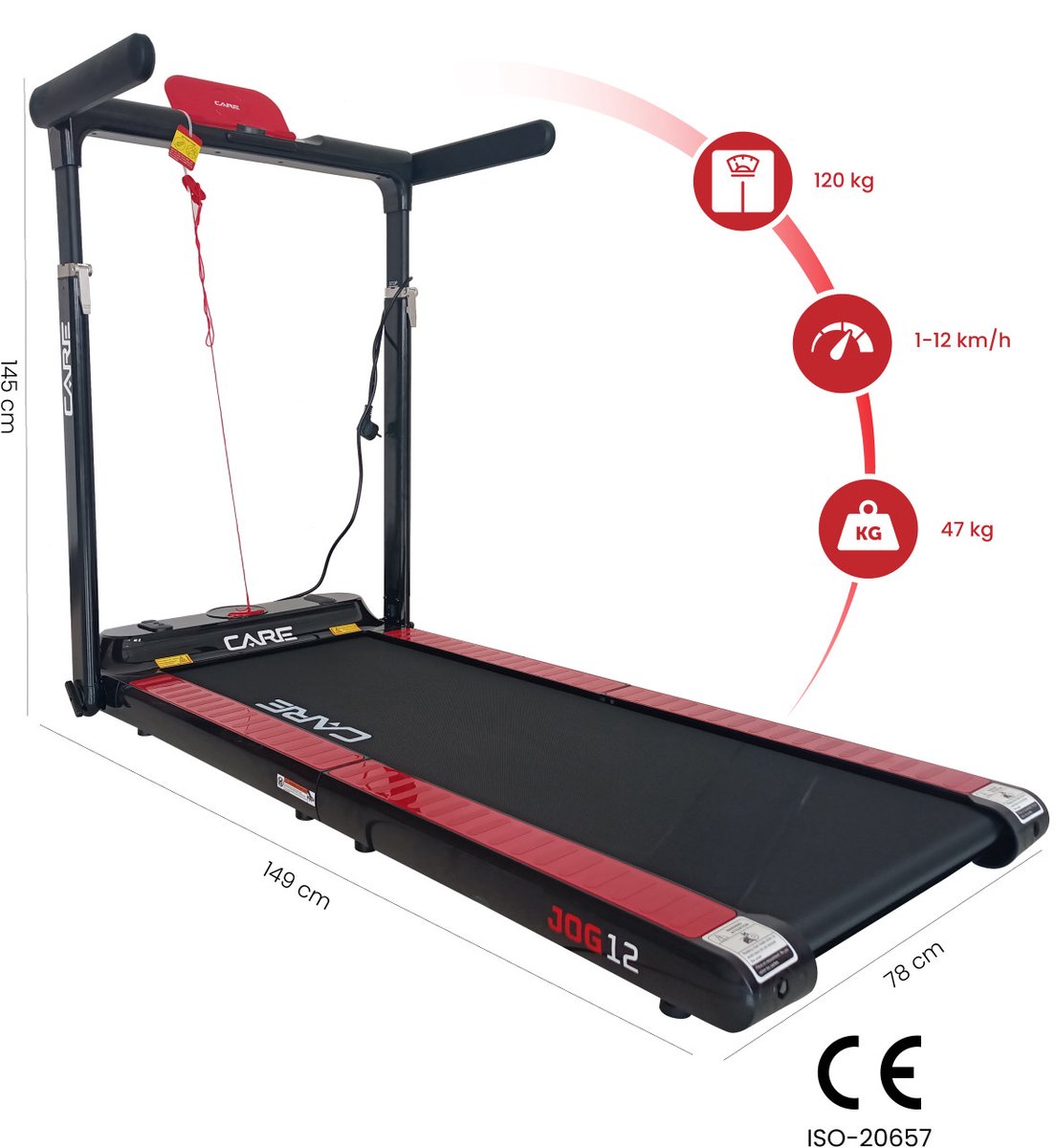 Comfort : De JOG 12 is een loopband die zowel comfortabel als ergonomisch is, om u een adequate training en gemakkelijke opslag te bieden: