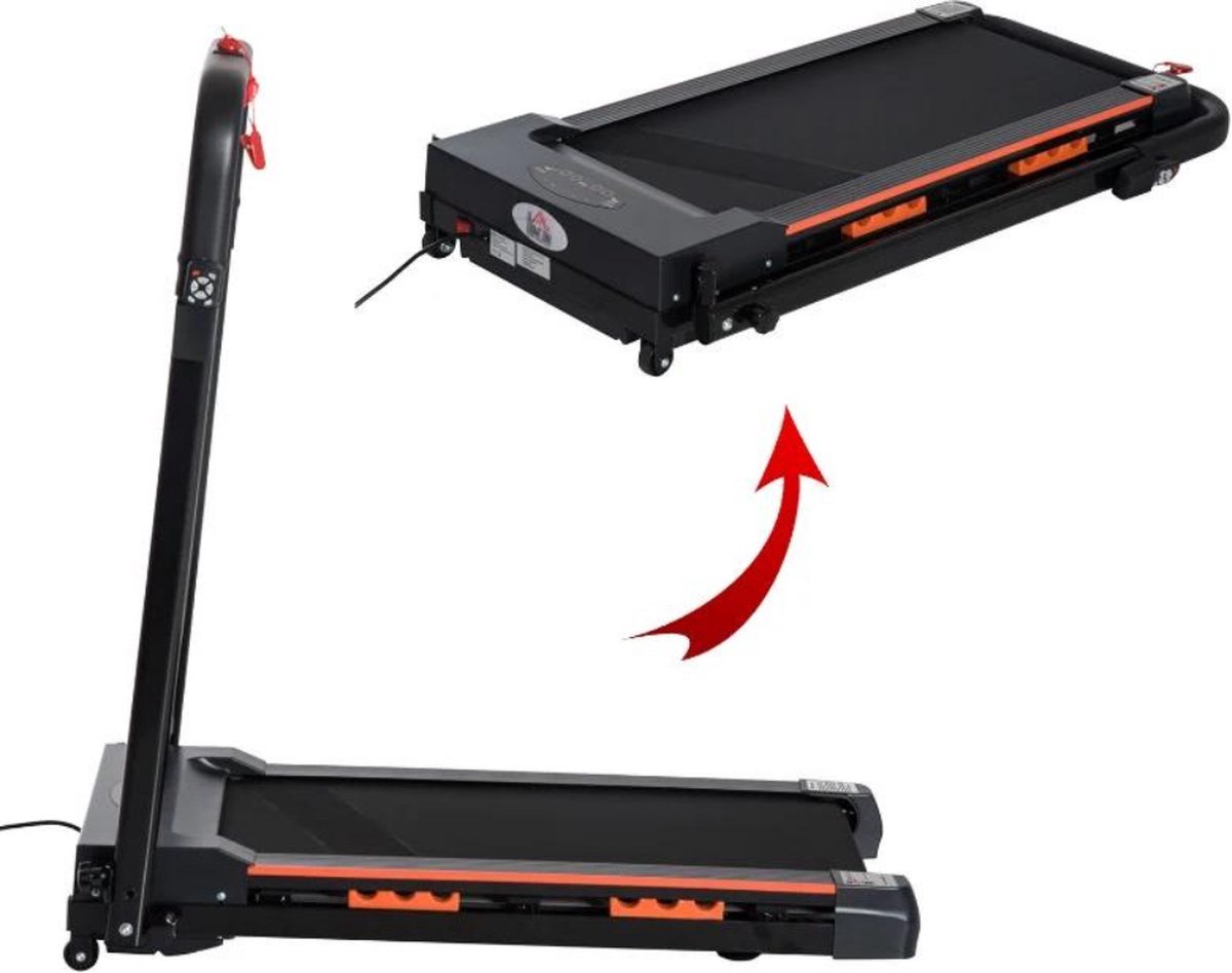 Inklapbaar ontwerp: Het compacte ontwerp met inklapbare functie maakt het eenvoudig om de loopband op te bergen als deze niet in gebruik is, ideaal voor kleine ruimtes.