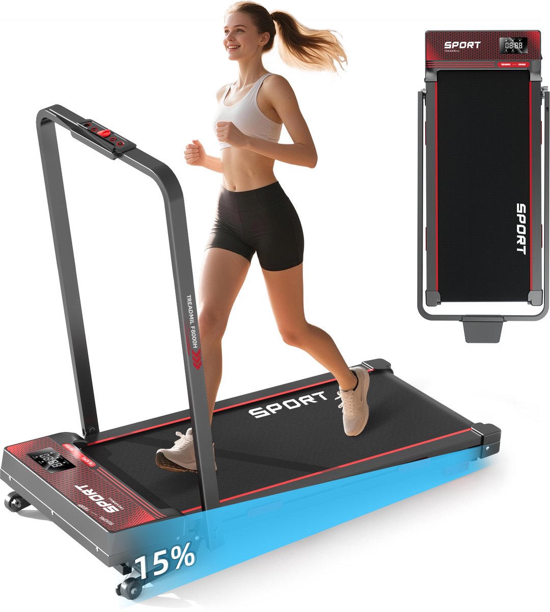 Opvouwbare loopband met ruimtebesparend ontwerp:
