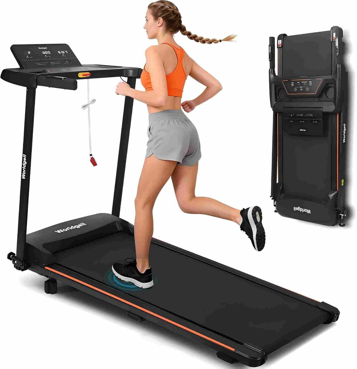 Hartslagsensor – Train slimmer De loopband heeft handpulssensoren op de leuning die uw hartslag in realtime meten en u volledige controle geven over intensiteit, vetverbranding en uithoudingsvermogen – voor een slimmere, veiligere en effectievere training thuis.