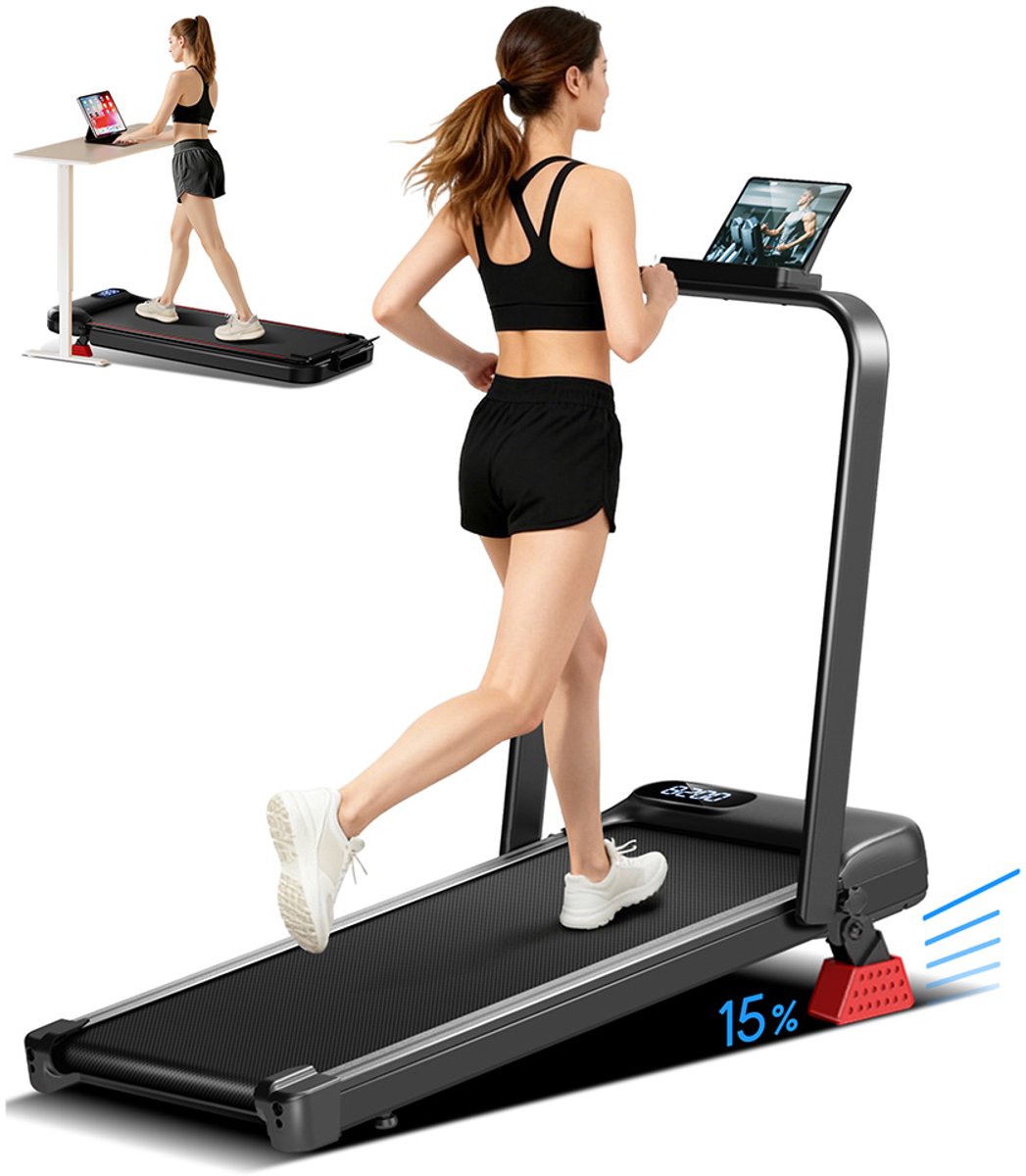 Deze opvouwbare loopband biedt een verstelbare hellingshoek van 15% om echt bergopwaarts hardlopen te simuleren. Verbrand tot 60% meer calorieën, verminder de impact op je knieën met 30% en verbeter je cardiovasculaire uithoudingsvermogen met 20%-perfect voor effectieve en veilige thuisworkouts.