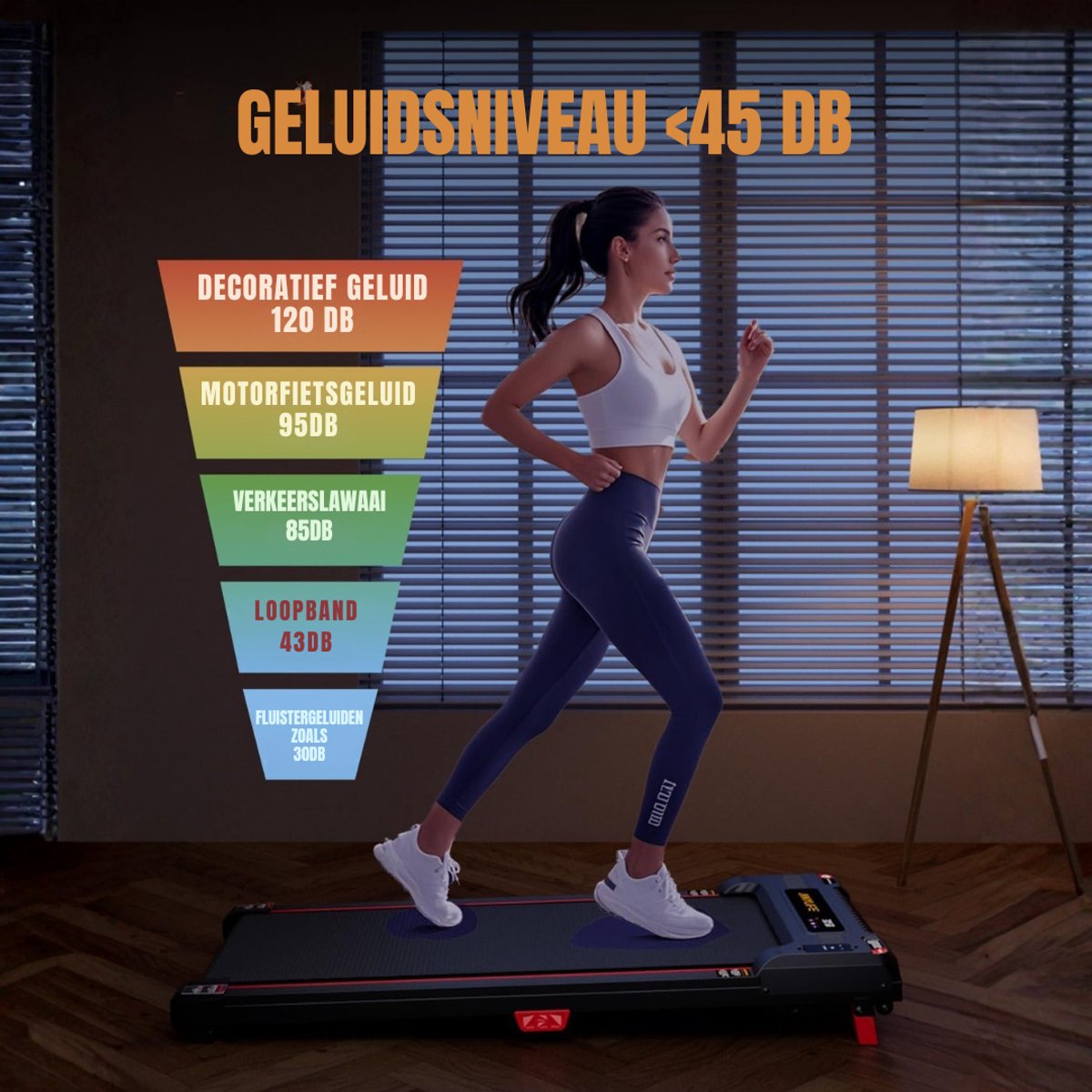 Compact en krachtig Deze compacte treadmill past moeiteloos in elke kamer en is inklapbaar, zodat je hem na gebruik eenvoudig opbergt. Hij combineert een loopmat met helling en een stil loopoppervlak, waardoor je zowel calorieën verbrandt als je buren of collega’s niet stoort. Dit is jouw kans om moeiteloos dagelijkse beweging in je leven te integreren.