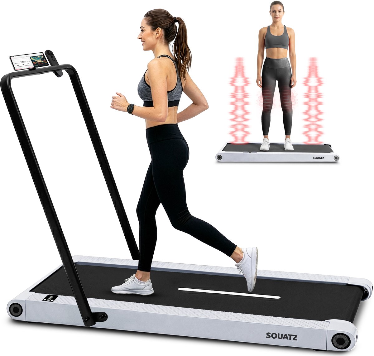 Squatz 2-in-1 Loopband – Walking Pad Treadmill met Handvat & Vibratieplaten – LED Display, Apparaathouder, Stille 1.0HP Motor – Wit