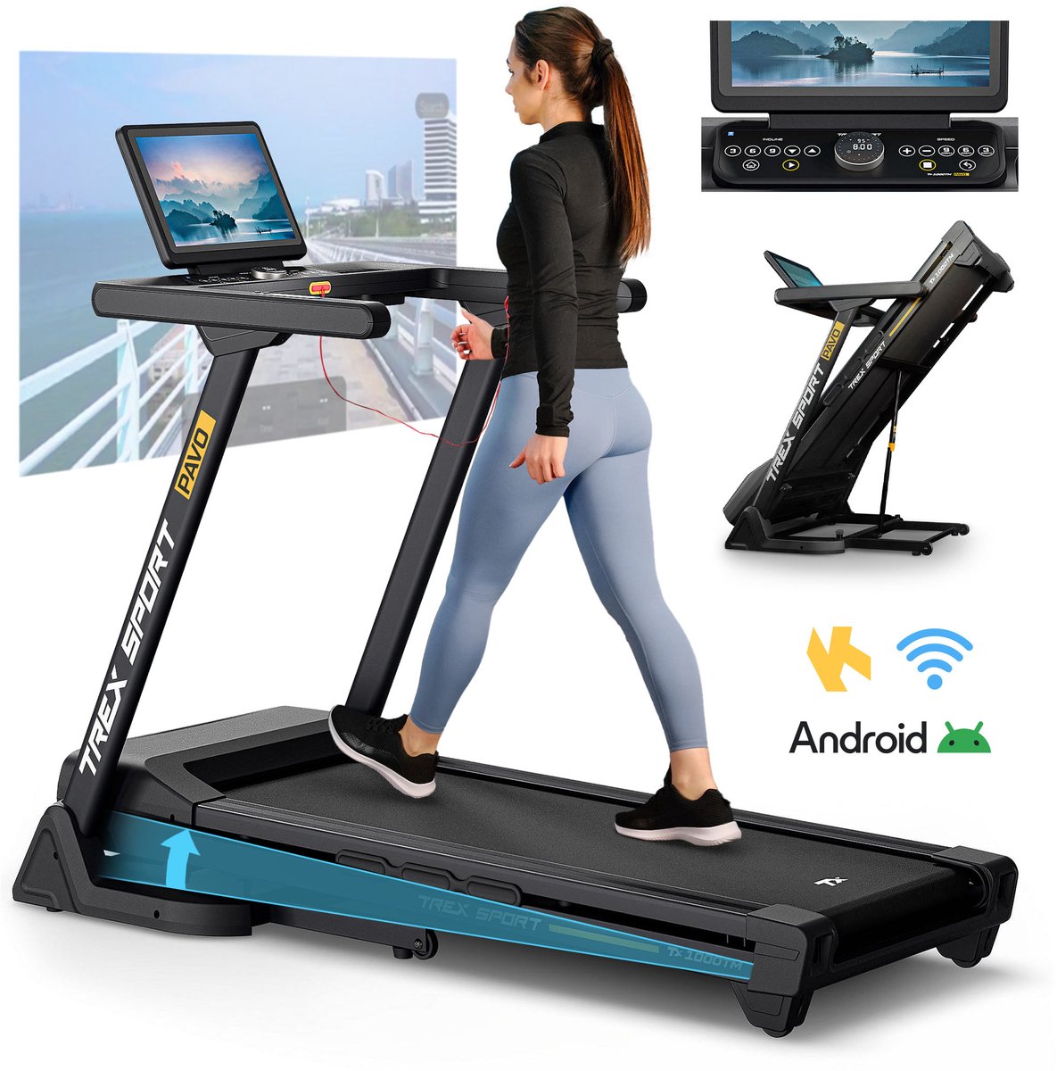 Loopband PAVO – jouw persoonlijke fitness- en ontspanningscentrum Stel je een loopband voor die zich niet alleen perfect aanpast aan jouw tempo, maar ook meer te bieden heeft dan menig smart TV. De elektrische loopband PAVO is een premium toestel voor thuisgebruik, dat een krachtige borstelloze motor van 2,53 pk combineert met een snelheid tot 16 km/u, een verstelbare hellingshoek tot 15°, én een computer met Android-systeem, een groot 15,6-inch touchscreen en ingebouwde luidspreker – een tablet en entertainmentcentrum in één.