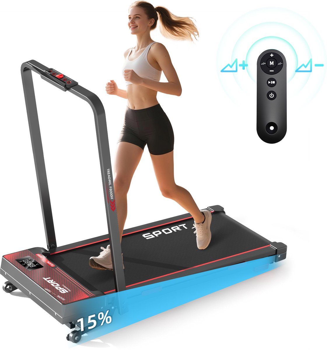 Y-RAIN Loopband – 15% Elektrische hellingsverstelling- 1-12 km/u – 2 in 1 – Opvouwbare Loopband – Treadmill – Afstandsbediening – Tablet-/telefoonhouder – voor thuis & kantoor – Zwart.