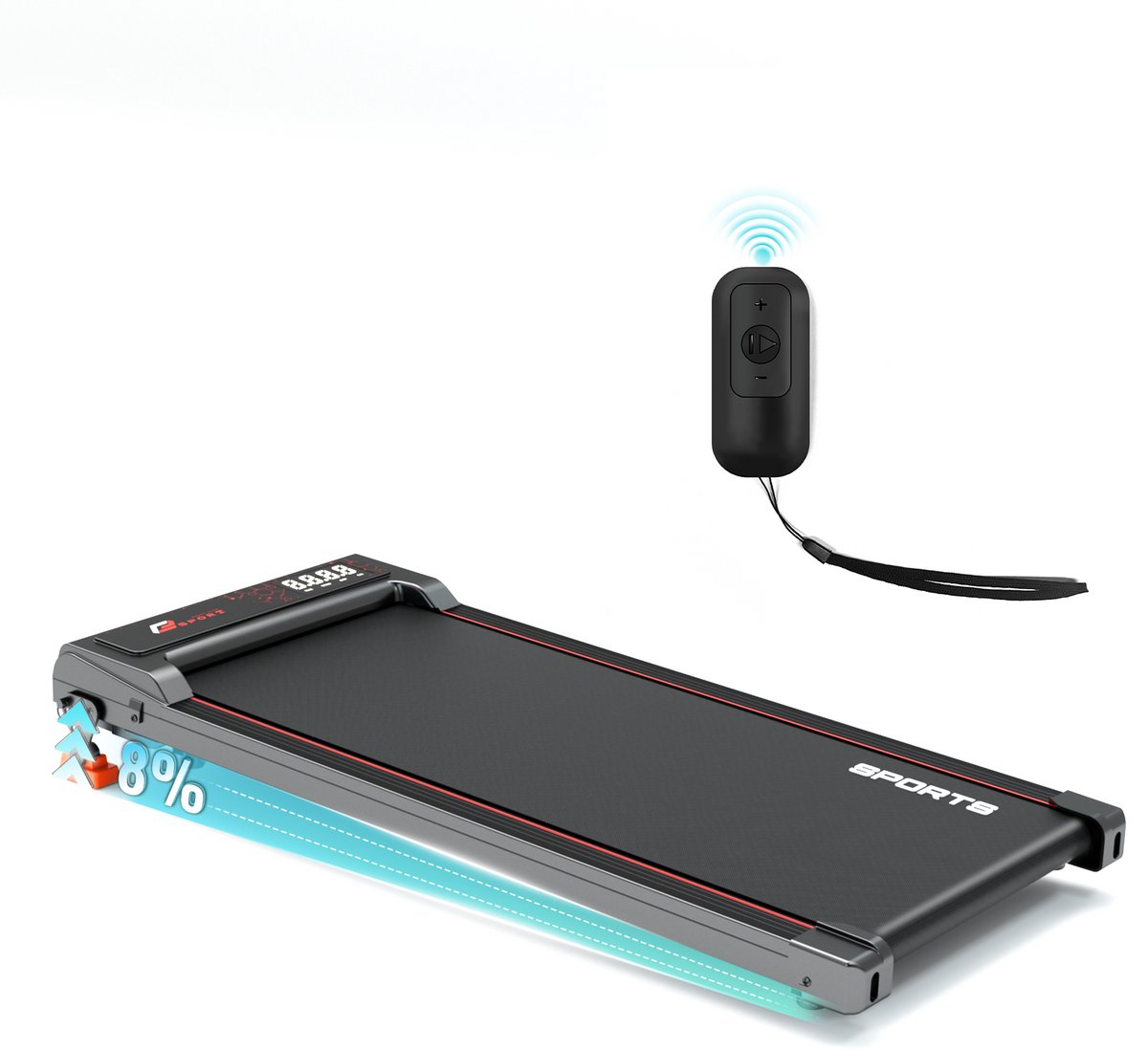 Uitgerust met intelligente afstandsbediening, eenvoudig om de snelheid en start/stop aan te passen, eenvoudige en gemakkelijke bediening. LCD-display toont duidelijk real-time tijd, snelheid, afstand en caloriegegevens, wat handig voor je is om de trainingsstatus bij te houden en redelijkerwijs het trainingsprogramma te plannen.